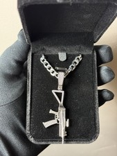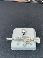 925 Italy Sterling Silver AK-47 pendant With 1 Ctw Lab Grown Diamond🔥🔥🔥🔥🔥