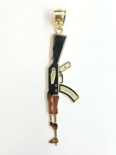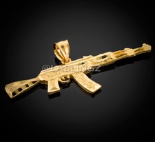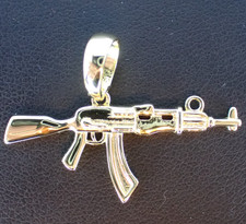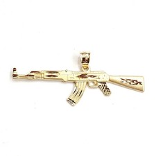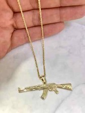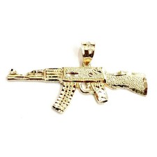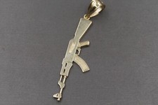 GOLd Gun Pendant Ak47 Rifle Machine weapon 10k yellow solid Necklace 2.80"