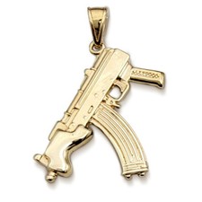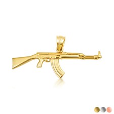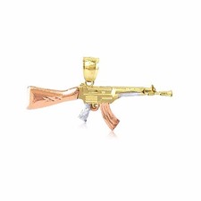 Gold AK-47 Rifle Gun Pendant (yellow, white, rose gold, 10K, 14k)