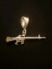 Sterling Silver AK47 Pendant, Machine Gun Necklace, Combat Rifle Pendant