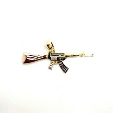 14k yellow Gold AK-47 machine gun military rifle Pendant charm fine gift 4.6g
