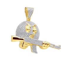 Men's10k Gold Angry Emoji with AK47 Machine Gun Pendant with Diamonds 1.2ct