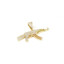 Machine Gun "AK47" Two Tone Pendant CZ - 10k Yellow Gold