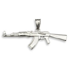 Solid 10K White Gold AK-47 Pendant, Real Gold Gun Pendant AK47