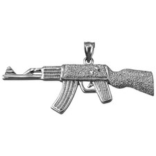 Solid 18K White Gold AK-47 Pendant, Real Gold Gun Pendant AK47