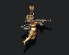 Baby Angel Necklace with AK47 gun pendant, Baby angel with gun pendant
