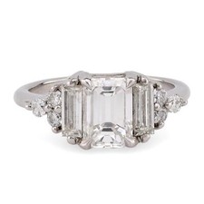 Platinum Vintage Round and Baguette White Diamond Engagement Ring