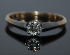 Vintage 18ct Gold & Platinum Solitaire Old Cut Diamond Ring 0.16 Carat