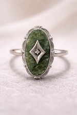Vintage Jade & Diamond Platinum Cocktail Ring MUST WATCH VIDEO
