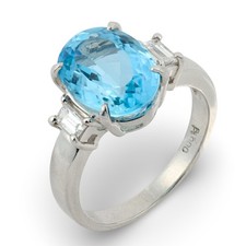 Vintage 2.61 carat oval cut aquamarine diamond platinum ring