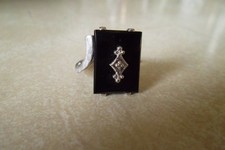vtg KIMBERLY 10K white gold black onyx diamond art deco style ring 4.1g no scrap