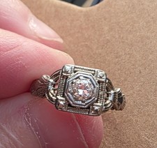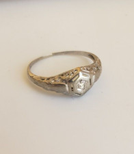 VTG 10k White Gold Diamond Ring Genuine Art Deco Filigree Dainty Engage size 6.5