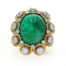 Ruser Emerald Diamond Vintage Halo Cocktail Ring Gold 18k Platinum 19.85ctw GIA