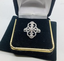 Diamond 10k White Gold Vintage Filigree Ring Size7