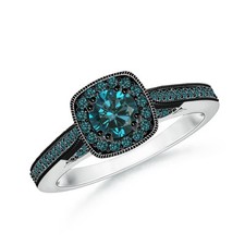 Angara Natural Round Enhanced Blue Diamond Ring in 14K White Gold (4.5MM)