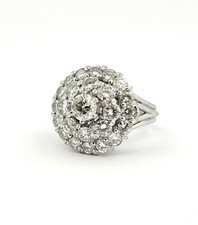 Vintage Mid-Century Platinum European Cut Diamond Cocktail Ring 1.87ctw