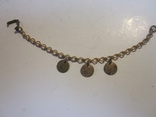 WLP bracelet Indian head penny heart edge pendant goldtone metal rope chain vint