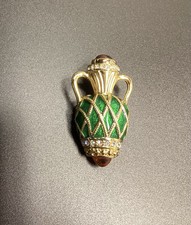 Joan Rivers Enamel Rhinestones Cabochon Urn Pin Brooch Perfume Bottle Vintage