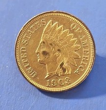 Vintage 1906 Indian Head Penny One Cent US Coin Lapel Hat Pin Tie Tack