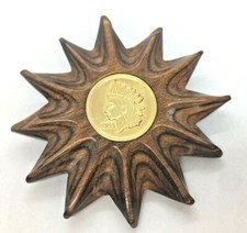 Vintage Indian head penny 1803 Gold plated Brooch on wood Pin