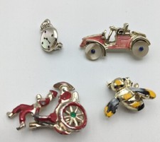 Vintage Whimsical Tiny Pins Brooches Bee Clock Car Rickshaw