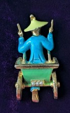 Vintage Asian Oriental Rickshaw Driver Enameled Rhinestone Brooch Pin