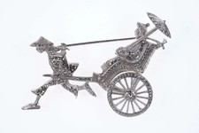Vintage Silver Figural Asian Rickshaw with Passenger Brooch Pin