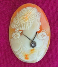 BIG Antique 55 MM Shell Cameo & 14K Diamond Necklace . Loose