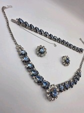 Vintage Hi End Shades Of Blue & Crystal Layered Bracelet, Necklace & Earring Set