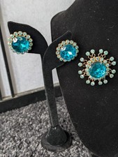 Teal Stone Statement Necklace with Matching Earrings Vintage Jewelry Estate Sale