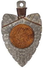 1902 Indian head penny embedded in arrowhead metal pendant