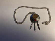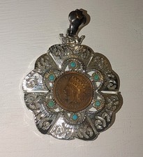 Native American pendant with 1901 Indian head penny feature. 2.25"hx1.25"w
