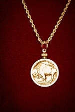 Coin Jewelry US Authentic Coin 5c BUFFALO/INDIAN HEAD NICKEL NECKLACE 18"DIA CUT