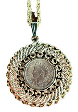 Coin Pendant Vintage Indian Cent Reeded Edge Gold Filled Bezel Soldered Bail