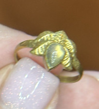 Vintage Gold Tone Adjustable Ring Teardrop Cabachon Stone Leaf Design MidCentury