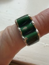 Groovy Vtg Mid Century Modern Adjustable STERLING Silver Green CHRYSOCOLLA RING