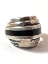 Mid-Century Sterling Ring S. Paliu Spain Dark Stone w/ Cream Inlay Sz Small