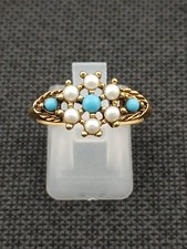 AVON 1972 "VICTORIAN SPLENDOR " goldtone faux pearls & turquoise adjustable size
