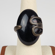 Vintage 60s 70s Modernist Brutalist Ring Black Onyx Mid-Century Statement 7.75