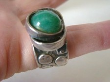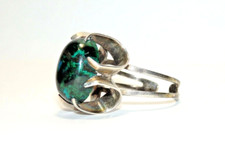 Groovy Vtg Mid Century Modern Adjustable STERLING Silver Green CHRYSOCOLLA RING
