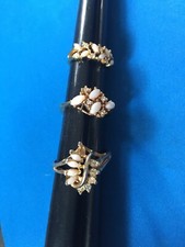 Gold Tone Marquise Opal & Rhinestone Ring Lot Vintage Mid-Century Uncas