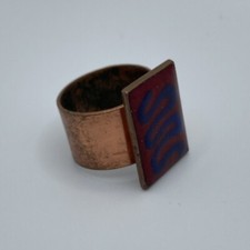 Mid Century Modern Copper and Enamel Ring Red and Blue Size 7 B1