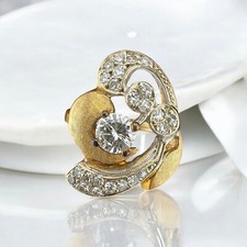 Vintage Mid-Century Natural Diamond Cluster Solid 14k Yellow & White Gold Ring