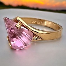 Vintage Ring Size 9 Pink Lens Cut Cubic Zirconia Modernist 14K Gold Plate 14J