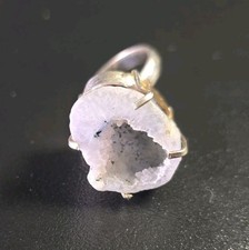 Mid Century Modern Sterling Silver 925 Israel Hammered Agate Band Ring