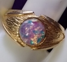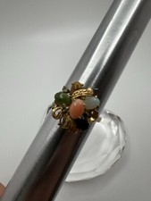 Vtg 60s Mid Century Foil Dragons Breath Harlequin Gold Tone Adjustable Ring