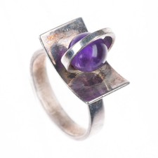 sz6.5 Poul Warmind - Denmark Mid century modernist sterling silver amethyst ring