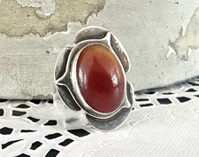 Bold Long Vintage Mid Century Modernist Sterling Silver 925 Carnelian Ring