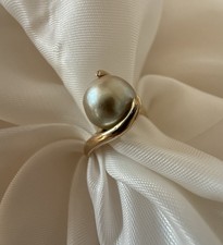 Vintage Fortune Jewlers 14K Gold Modernist Pearl Ring Size 6 Sculpturtal AJ Mark