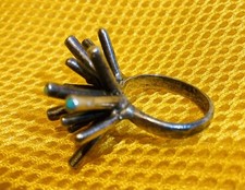 Vintage Silver Sterling Modernist Mid Century Sputnik Ring Turquoise Tips RARE